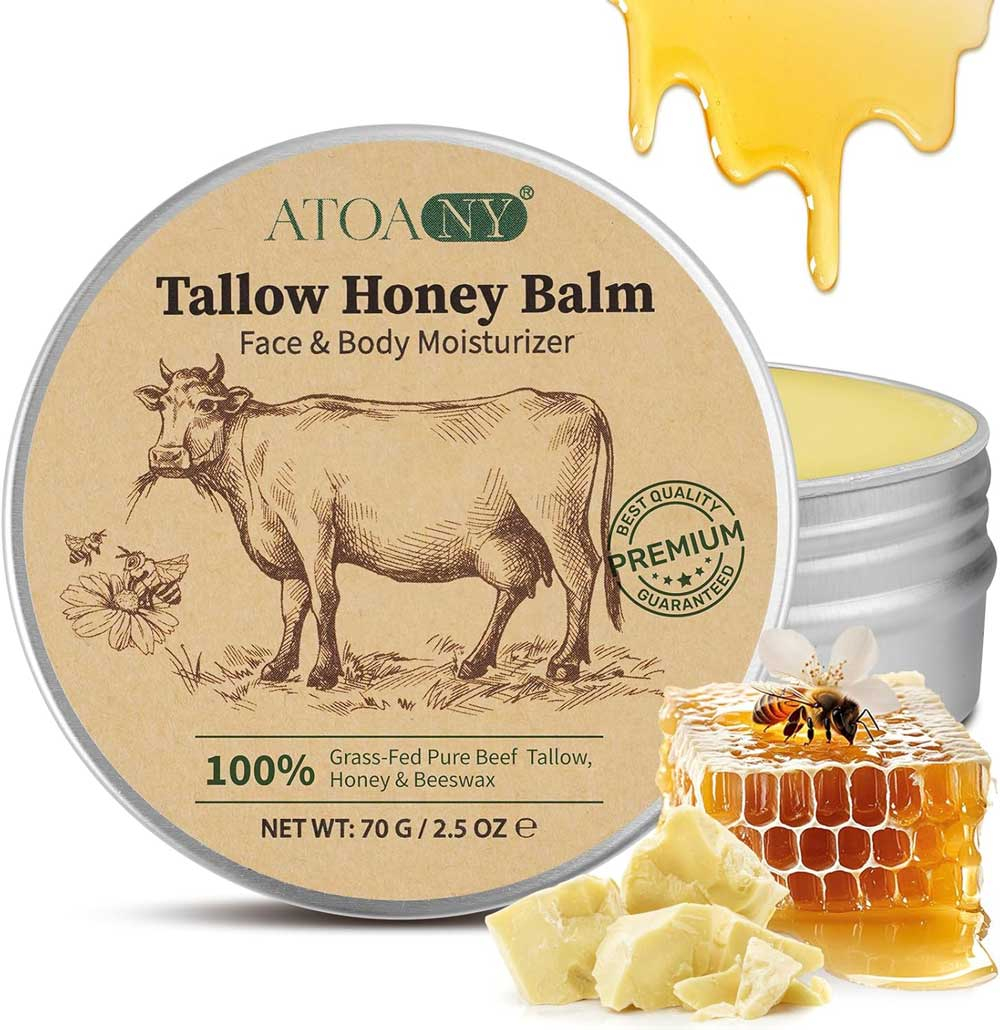 Balsamul natural pe bază de seu de vită, miere și ceară de albine oferă hidratare profundă și reparare intensă pentru pielea uscată, crăpată sau sensibilă.