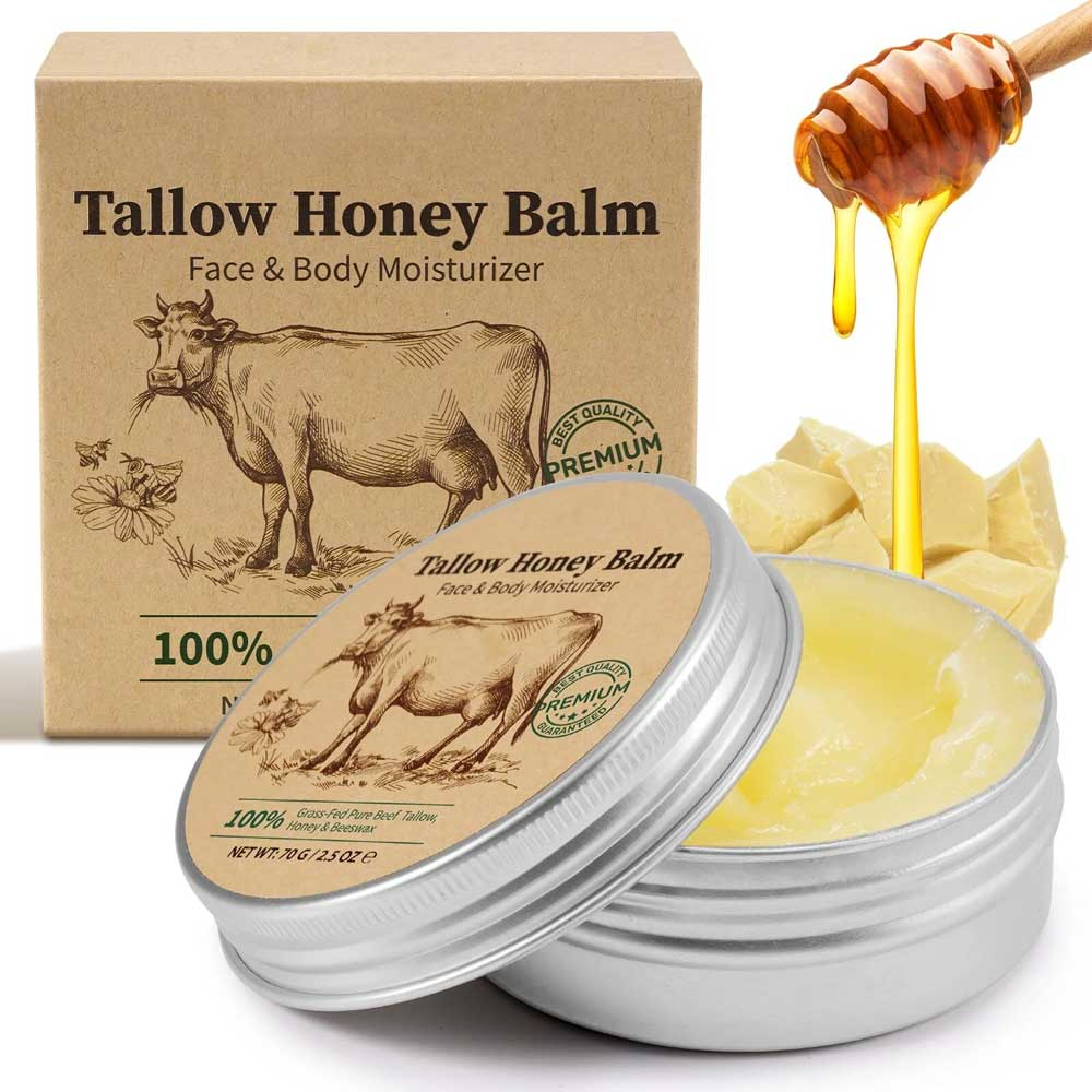Balsamul natural pe bază de seu de vită, miere și ceară de albine oferă hidratare profundă și reparare intensă pentru pielea uscată, crăpată sau sensibilă.