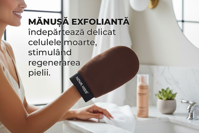NOVA KISS Set Profesional pentru Bronzare Fara Urme NOVA KISS® Tan Like a Pro, cu Manusa Autobronzanta, Manusa Exfolianta si Aplicator Spate
