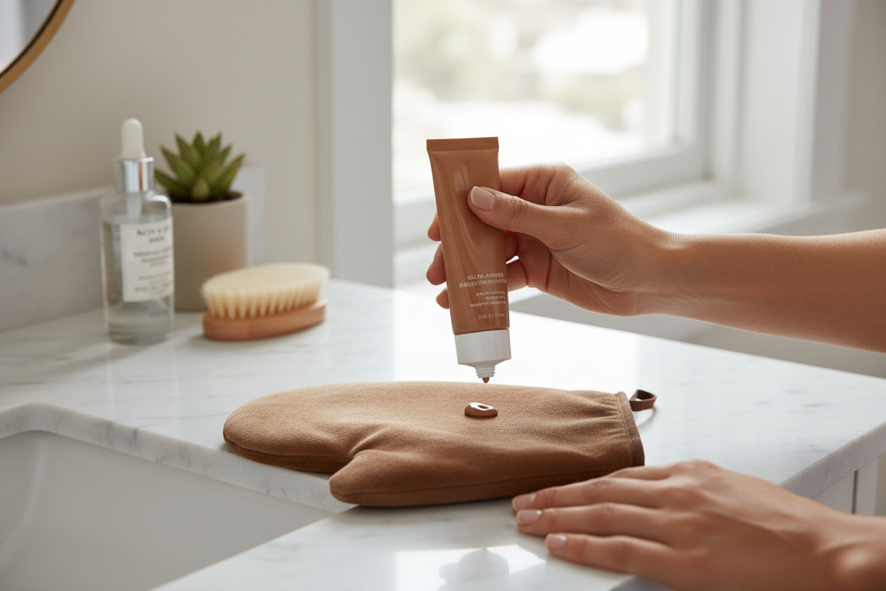 - Netezește pielea și pregătește perfect suprafața pentru bronz