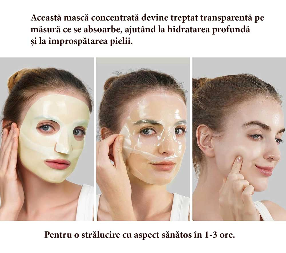 Fiecare mască acționează ca un tratament intensiv de regenerare și revitalizare, oferind un efect vizibil de uniformizare a culorii tenului și reducere a petelor cauzate de soare sau imperfecțiuni.